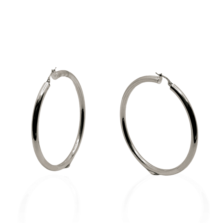 עגילי חישוק גדולים | חלקים מבריקים | זהב לבן 14 קראט| דגם אסנת