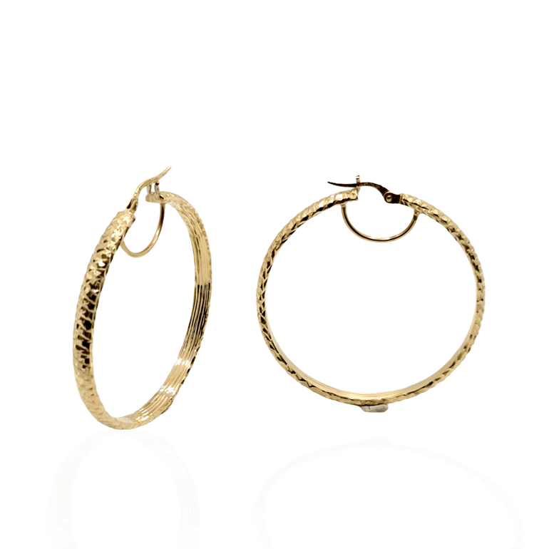 עגילי חישוק גדולים קלאסים | חיתוכי לייזר | זהב צהוב 14 קראט | דגם אריאנה
