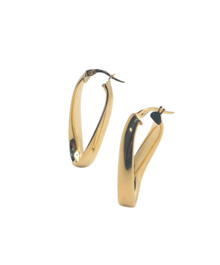 עגילי חישוק בצורה שמינייה | חלק מבריק | זהב צהוב 14 קראט | דגם אורטל