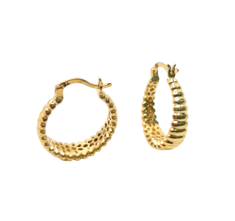 עגילי חישוק בצורת שק | פסים פסים חלק מבריק | זהב צהוב 14 קראט | דגם עינת