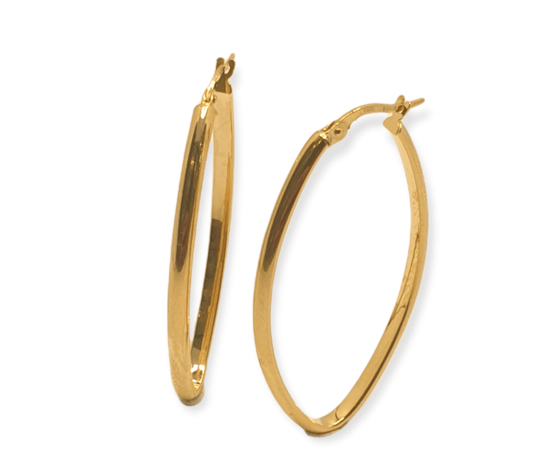 עגילי חישוק אובלית | זהב צהוב 14 קראט | חלק מבריק | דגם לנה