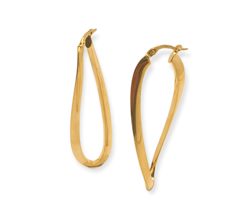 עגילי חישוק בצורת טוויסט, מזהב צהוב 14 קראט, עיצוב העגיל הינו חלק ומבריק נוצץ למרחקים, אשר נותן לעגיל מראה נוצץ, למראה קלאסי ועדין. העגיל בעל נוכחות גבוהה על האוזן ומתאים לכל הופעה .