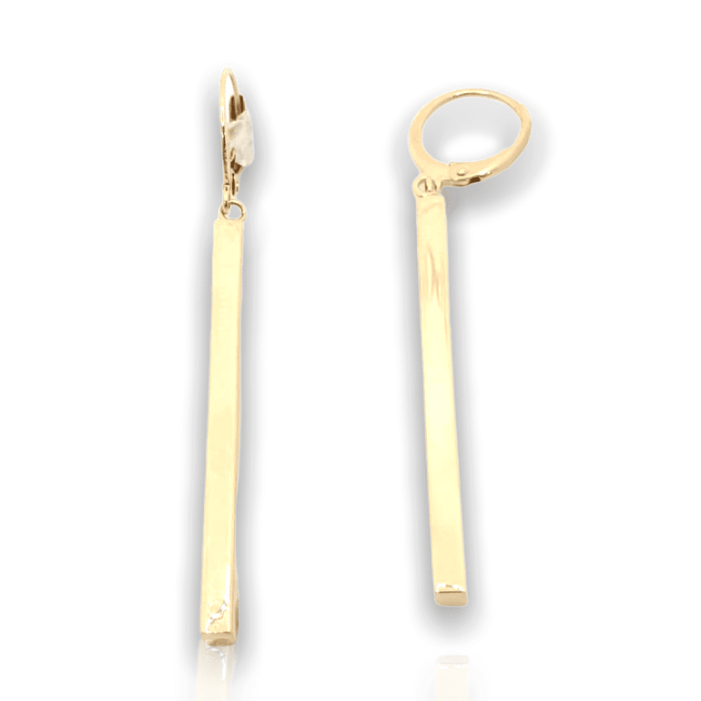 עגילים נופלים מוט | חלק מבריק | זהב צהוב 14 קראט | דגם קרן