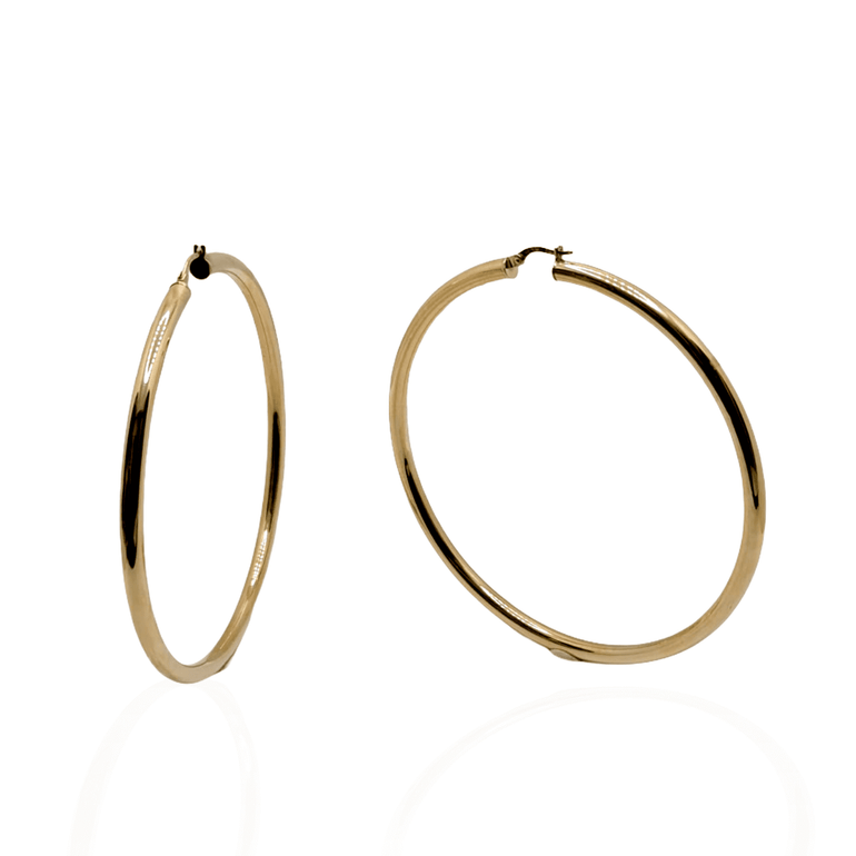 עגילי חישוק גדולים | חלקים מבריקים | זהב צהוב 14 קראט | דגם שגית