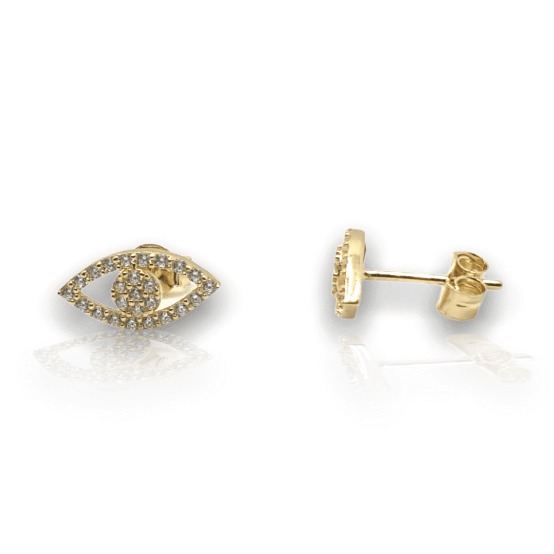 עגילים צמודים | בצורת עין משובצת | זהב צהוב 14 קראט | דגם סאלי
