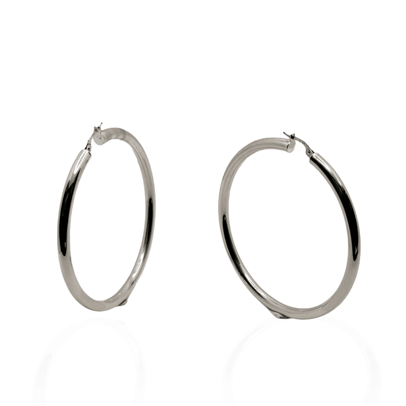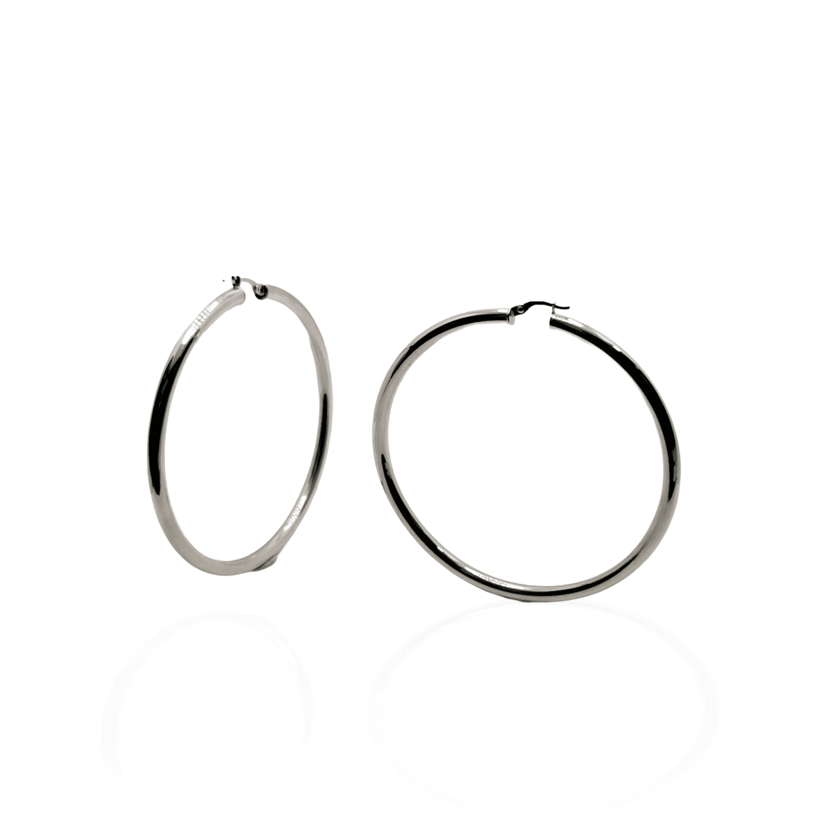 עגילי חישוק בינוניים | חלקים ומבריקים | זהב לבן 14 קראט | דגם אירית