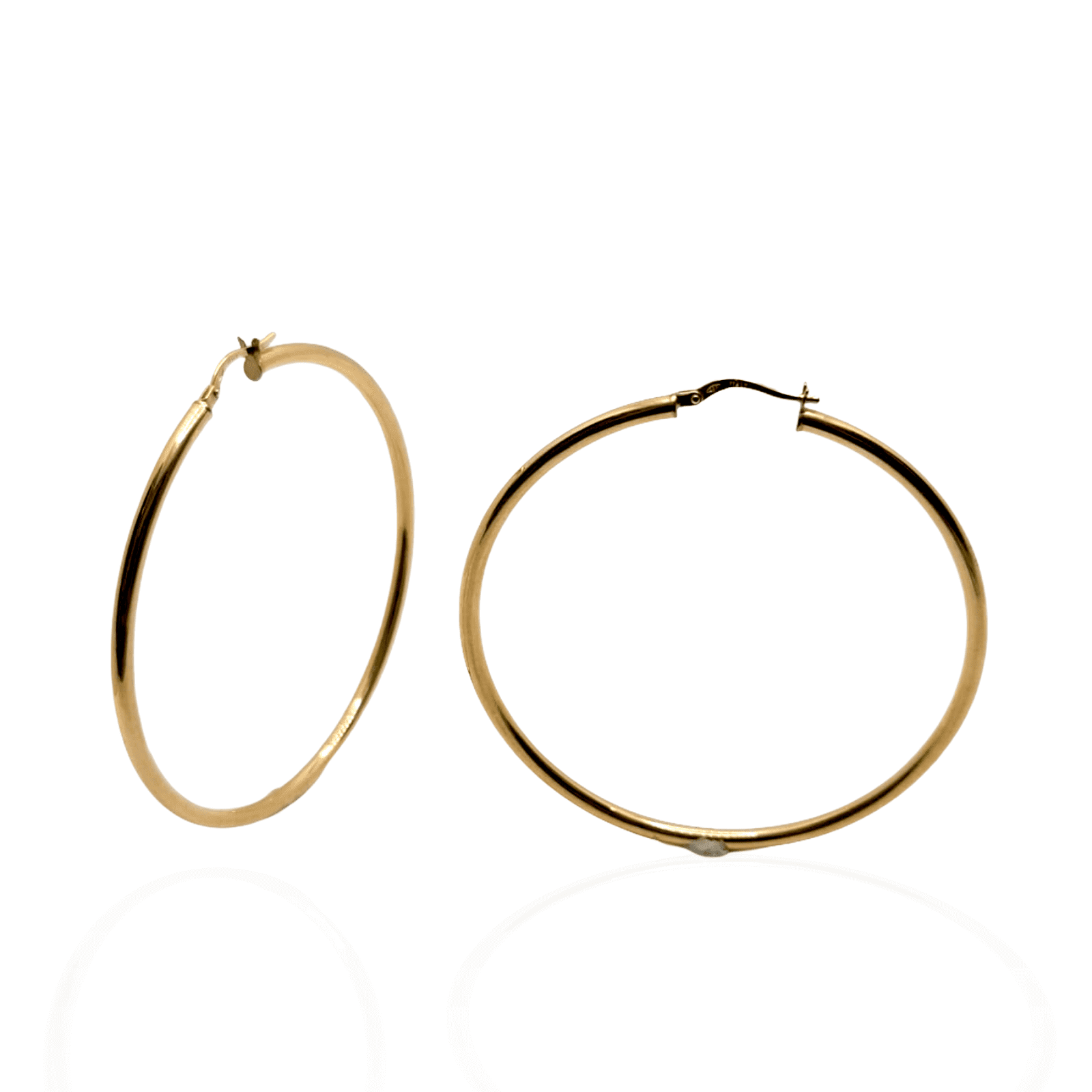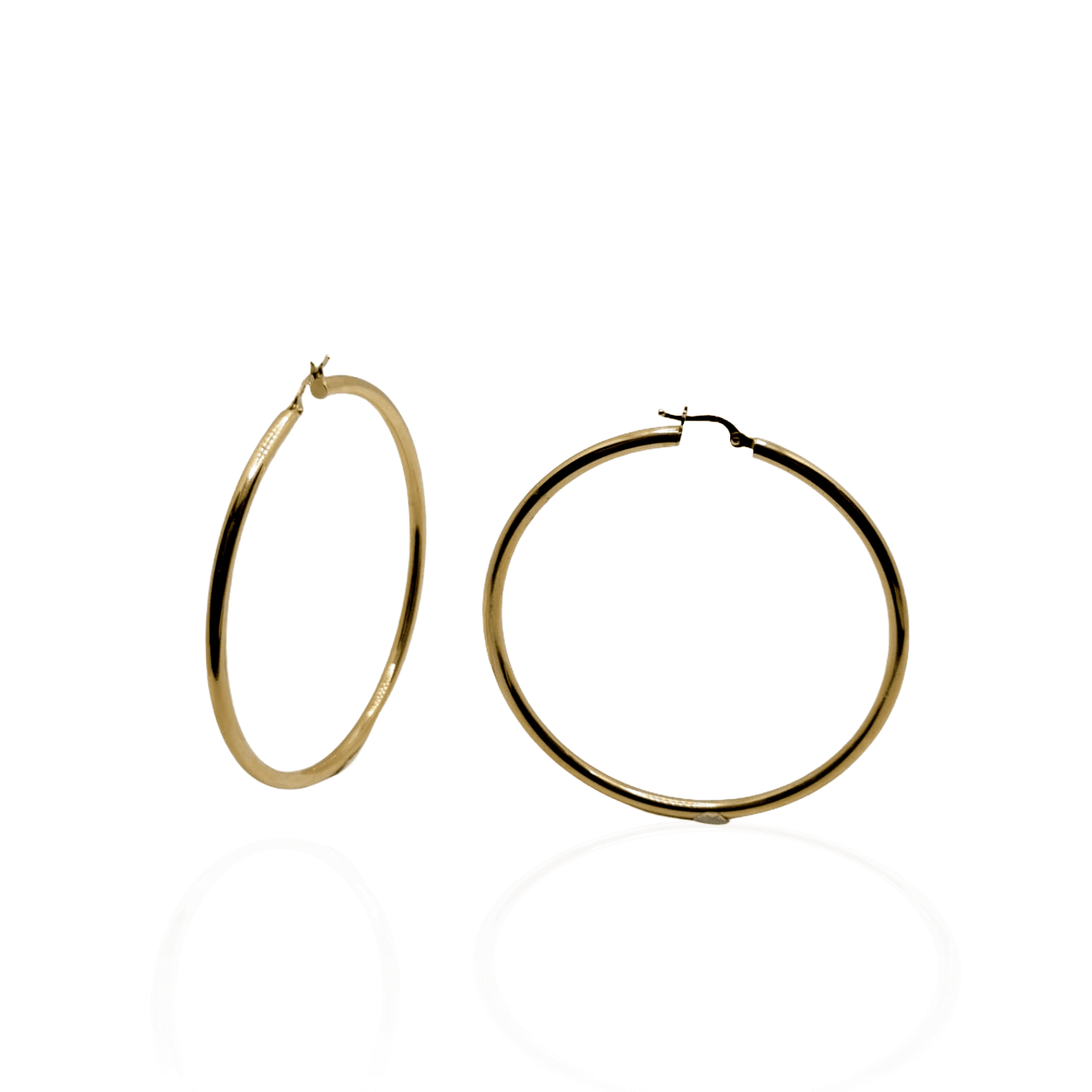 עגילי חישוק גדולים | חלקים מבריקים | זהב צהוב 14 קראט | דגם שגית