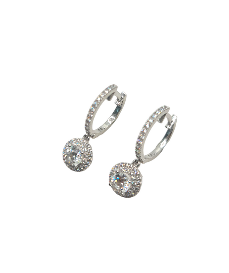 עגילים חישוק ותליון | משובץ באבני זרקון | זהב לבן 14 קראט | דגם אופק