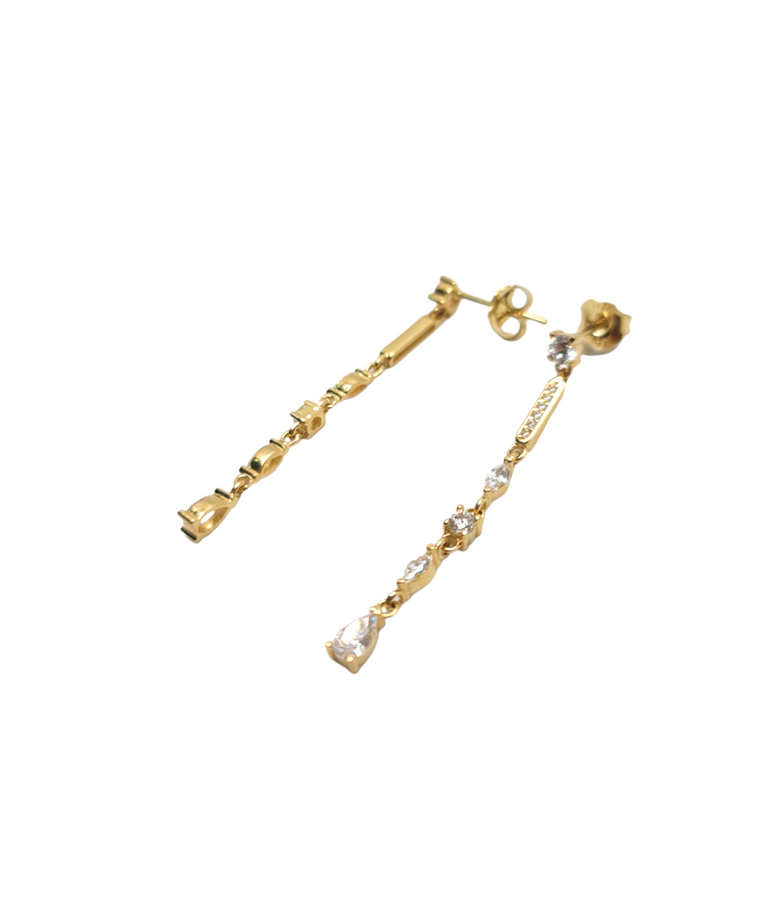 עגילים צמודים נופלים | אבן סוליטר מחובר לחוליות משובץ זרקונים | זהב צהוב 14 קראט | דגם סהר