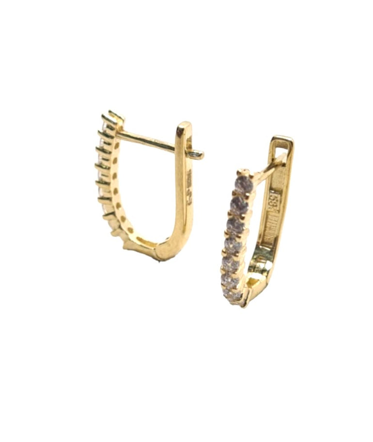 עגילי בננות חצי חישוק | משובצים זרקונים | שורת אבנים | זהב צהוב 14 קראט | דגם איריס