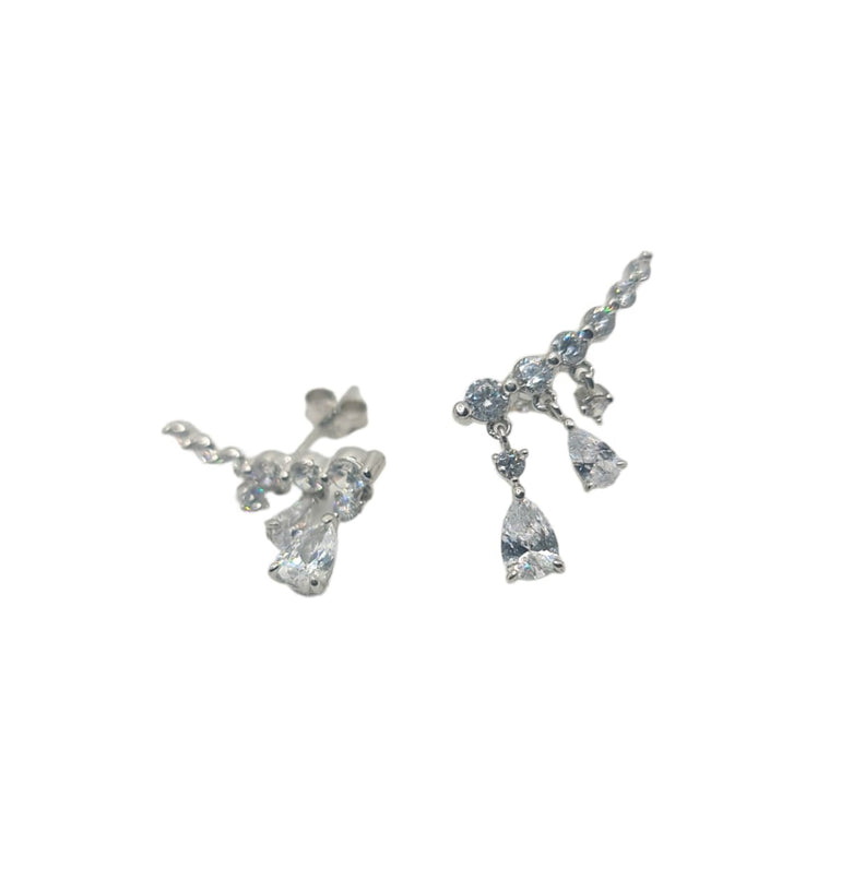 עגילים מטפסים ים | משובצים זרקונים | זהב לבן 14 קראט | דגם ים