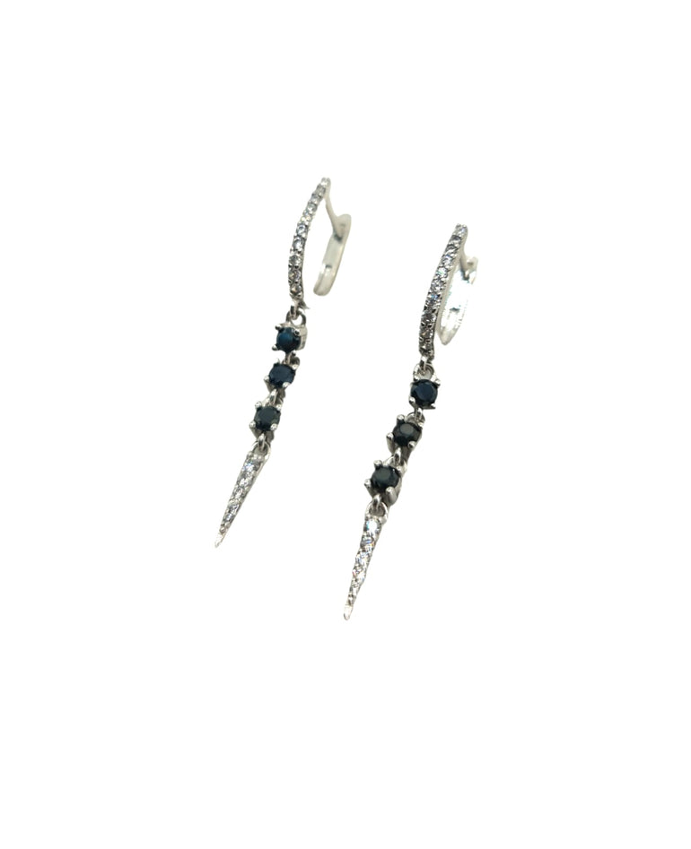 עגילים תלויים | חצי חישוק | משובץ אבני זרקון לבנות ושחורות | דגם נופר