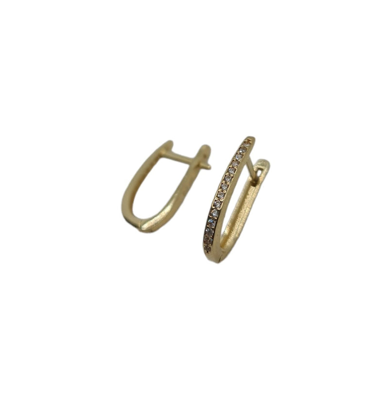 עגילי בננות חצי חישוק | משובץ זרקונים | זהב צהוב 14 קראט | דגםתהילה
