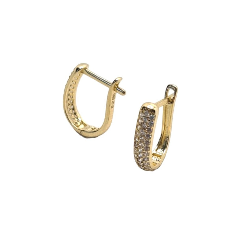 עגילים בננות משובצים זרקונים שלוש שורות עדינים סוגר אנגלי צמוד לאוזן עדין קלאסי במראה . בנוסף נותן גם מראה עדין