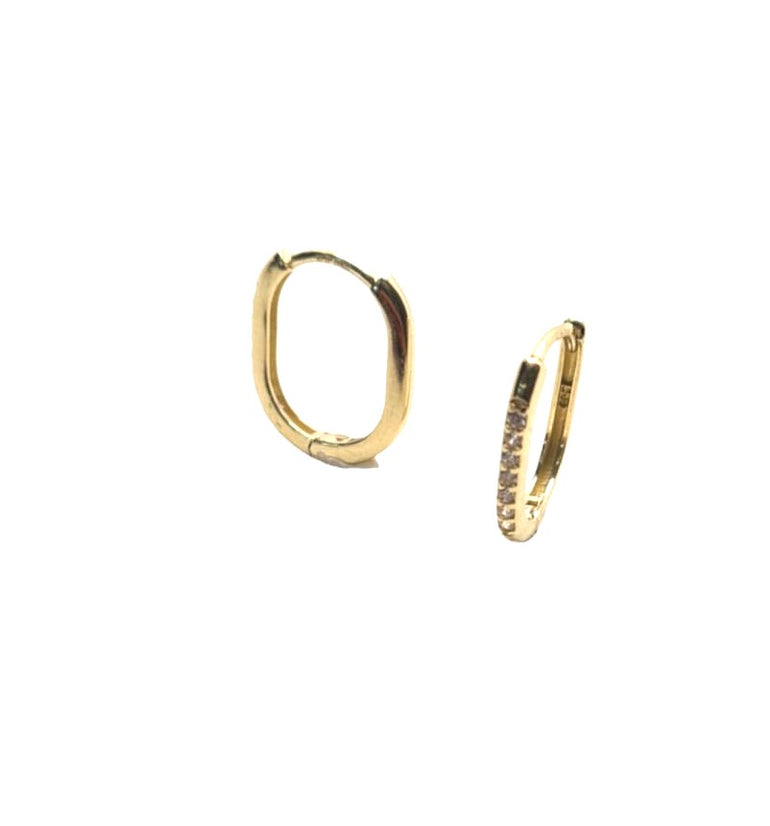 עגילים חישוקים קטנים משובצים באבני זרקון נוצצים בזהב צהוב. העגילים בצורה מרובעת מאוד מיוחדת ומאוד מחמיאה על האוזן. עדינים וקלאסים במראה.