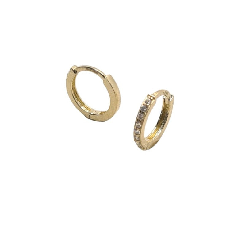 עגילי חישוק קטנים | משובצים אבי זרקון | זהב צהוב 14 קראט | דגם לירי