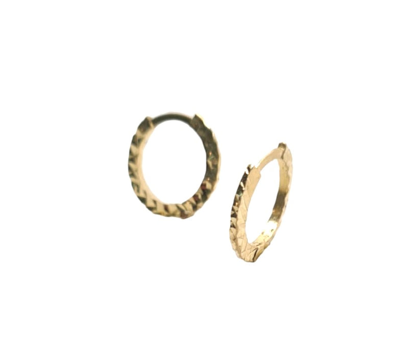 עגילי חישוק קטנים | חיתוכי לייזר | זהב צהוב 14 קראט | דגם גפנית