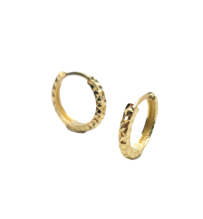 עגילי חישוק קטנים | חרוטים בחיתוכי לייזר | זהב צהוב 14 קראט | דגם אייל