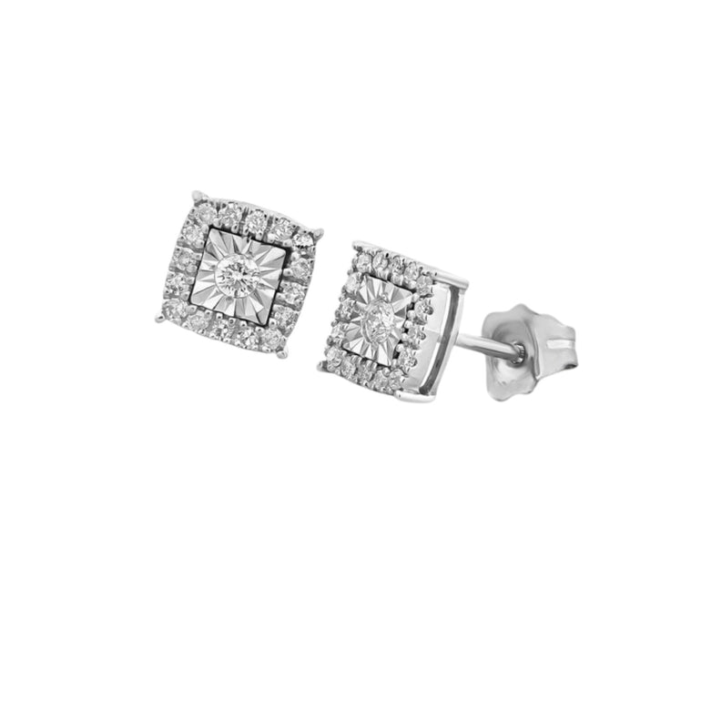 עגילי יהלומים | צמודים משובצים מרובעים | משובץ סה"כ 0.19 | זהב לבן 14 קראט | דגם שיר
