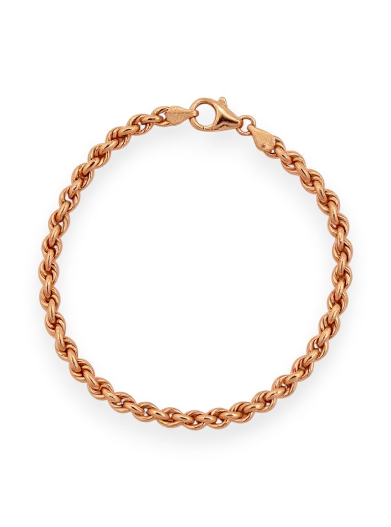 צמיד חבל לגבר בעיצוב שזור ומוקפד, עשוי זהב רוז גולד 14 קראט עם גימור מבריק ונקי. השזירה הסימטרית מעניקה לצמיד מראה תלת־ממדי ויוקרתי, המשלב קלאסיות עם טוויסט עדכני. מתאים לגבר שמעריך עיצוב אלגנטי, נוכחות מרשימה וסטייל מודרני ואלגנטי גם יחד.