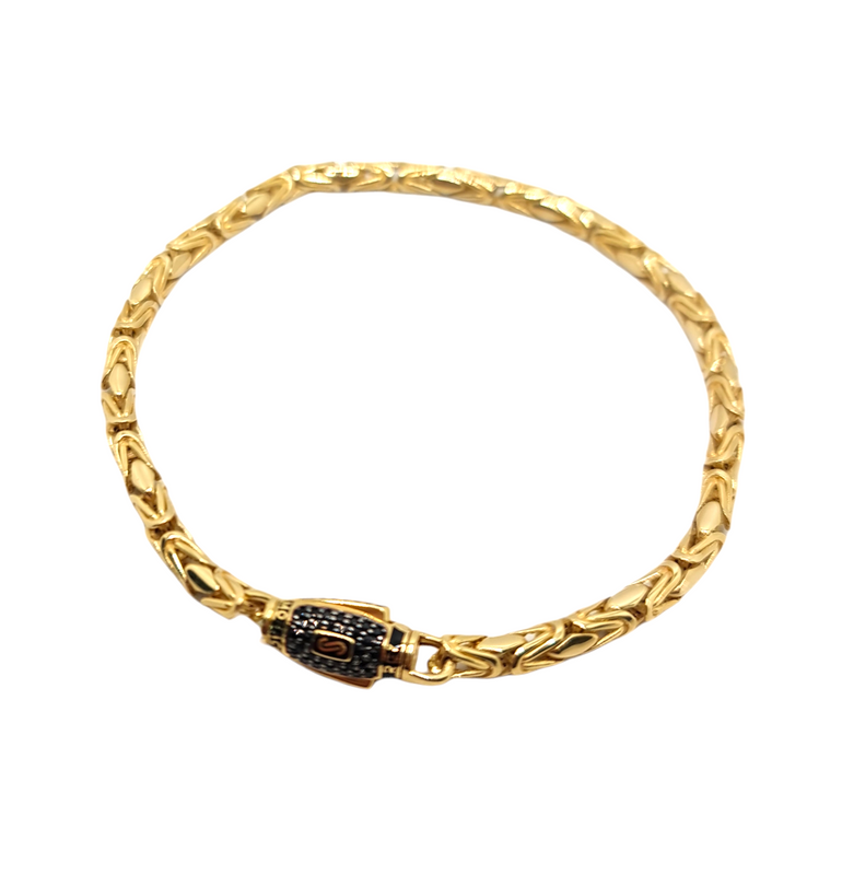 צמיד לגבר זהב צהוב | מונקו צ'ין חוליות צפופות סיגנון צינורי חדש | סוגר משובץ אבני זרקון שחורות | זהב צהוב 14 קראט | דגם עופרי