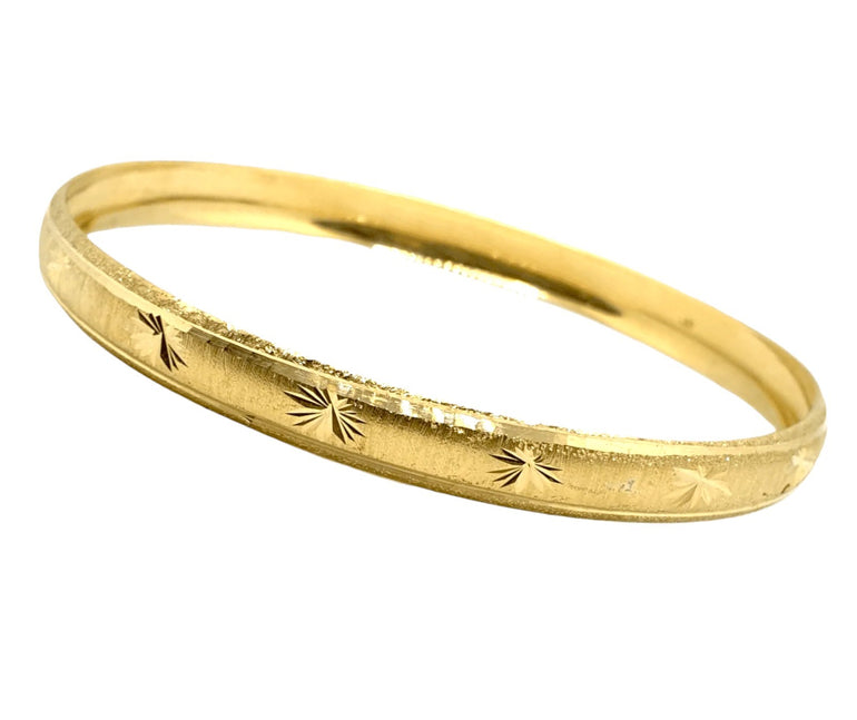 צמיד קשיח רחב | עיטור כוכבים קנט חיתוכי לייזר | זהב צהוב 14 קראט | דגם אמירה