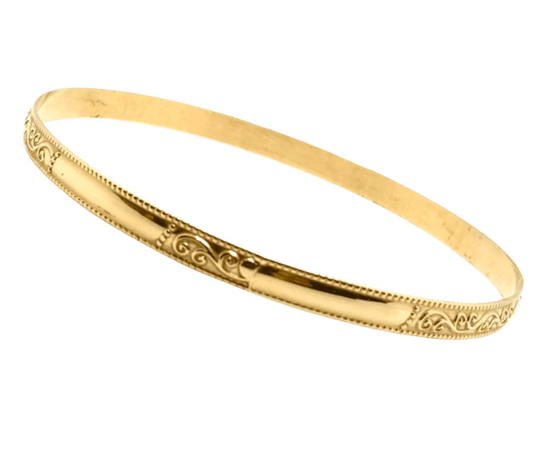צמיד קשיח | תחרה מרוקאית | זהב צהוב 14 קראט | | דגם גפנית
