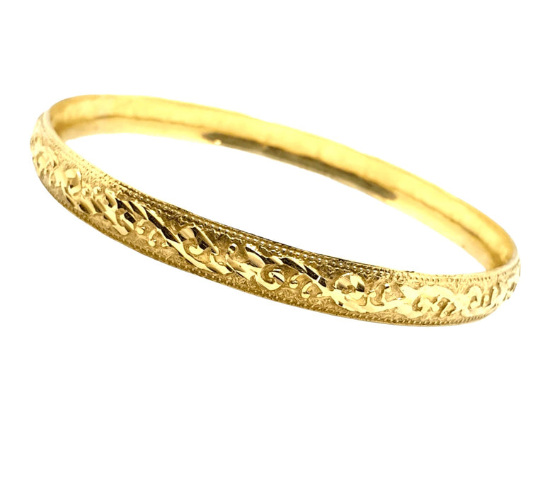צמיד קשיח | מרוקאי מעוטר פרחים כולו | זהב צהוב 14 קראט | דגם הלנה
