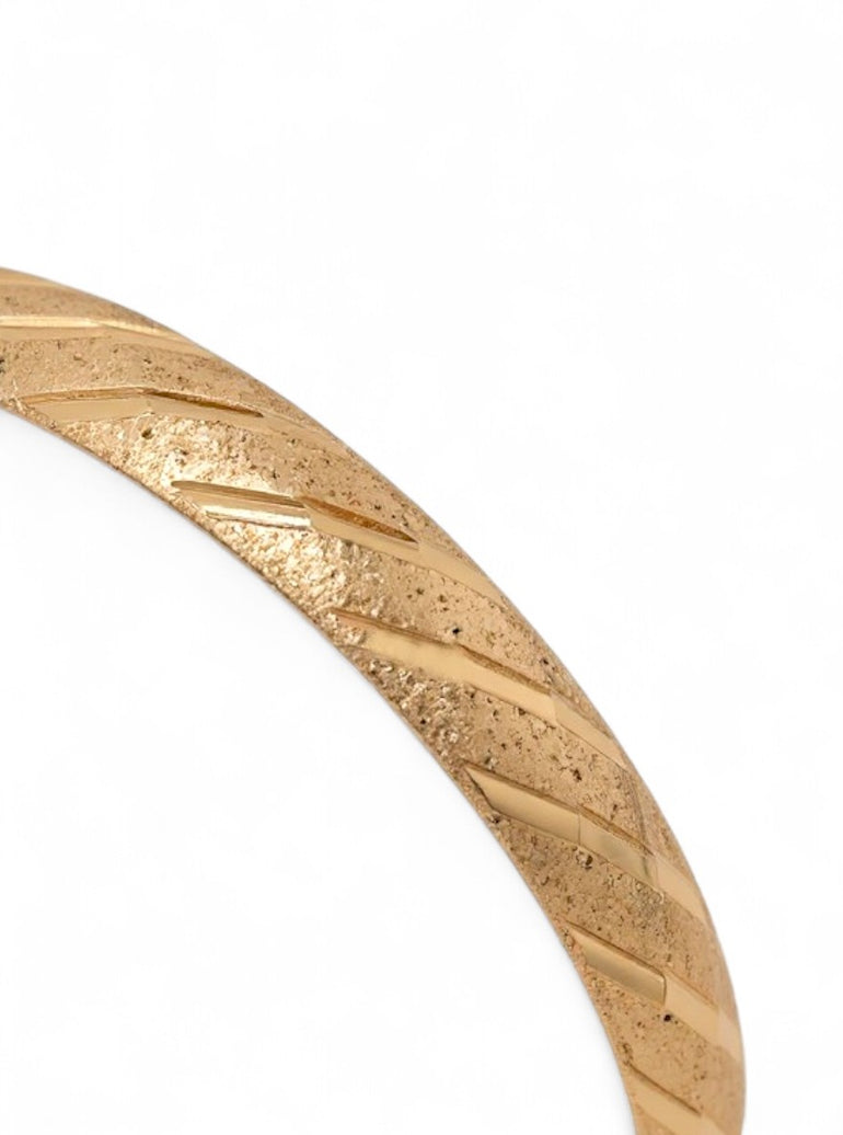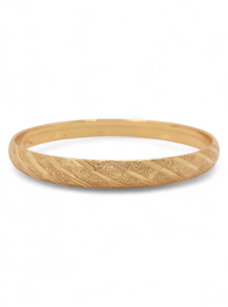 צמיד קשיח יוקרתי | חריטת לייזר אלכסונית עם טקסטורת נצנצים | זהב צהוב 14 קראט | דגם אלה