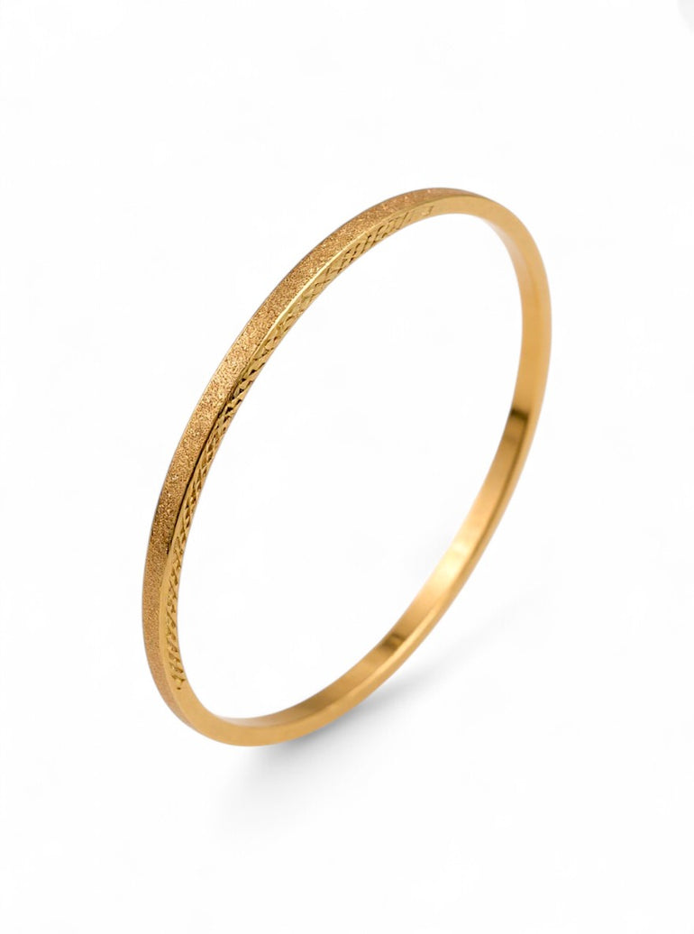 צמיד קשיח מזהב בעיצוב יוקרתי ומעודן, עם חריטת לייזר ייחודית בשילוב נצנצים עדינים, היוצרים דוגמה מבריקה ועדינה המשדרת יוקרה אלגנטית. הטקסטורה המיוחדת מחזירה אור בכל תנועה ומעניקה לצמיד ברק מרהיב עם נגיעה קלאסית על-זמנית. בזכות העיצוב האלגנטי והנקי, הצמיד משתלב בקלות עם תכשיטים נוספים ומתאים הן לשימוש יומיומי והן לאירועים מיוחדים.