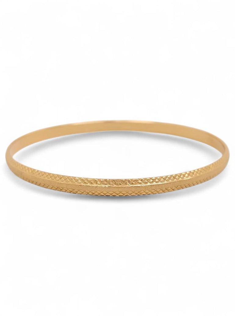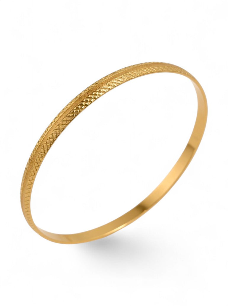 צמיד קשיח יוקרתי | חריטת לייזר משבצות עם פס נצנצים | זהב צהוב 14 קראט | דגם תמר