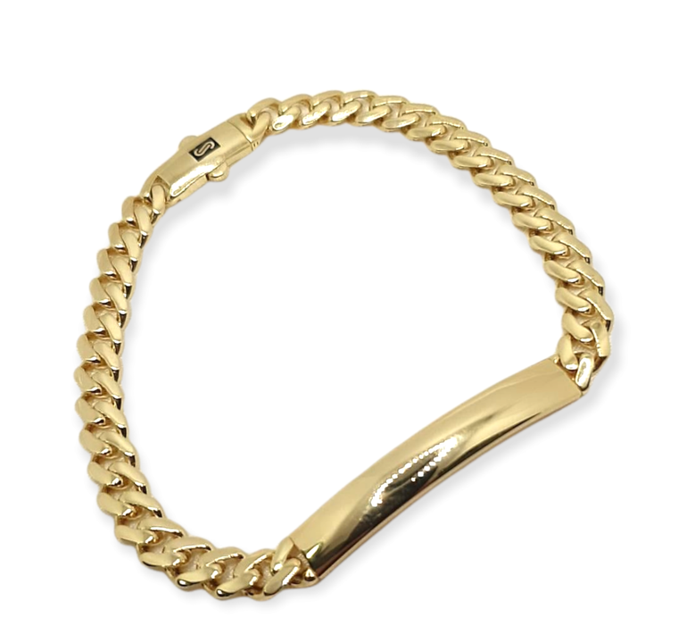 צמיד לגבר | דגם מונקו צ'ין חוליות ופלטה חלקה | זהב צהוב 14 קראט | דגם שניר