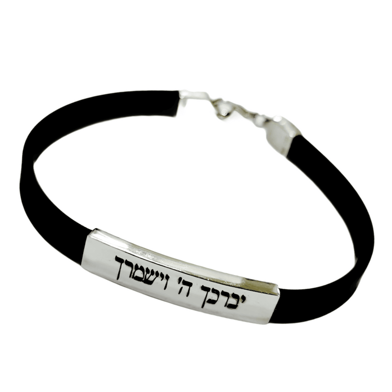 צמיד זהב עם רצועת סיליקון שחור ,  הסיליקון חזק ומרשים בצבע שחור ובאמצע הצמיד יש פלטה ארוכה וחלקה אשר חרוט עלייה את המשפט יברכך השם וישמרך. הצמיד מאוד מיוחד ומרשים לגבר אשר ישדרג כל הופעה.