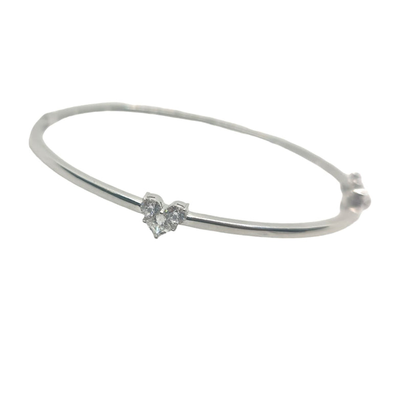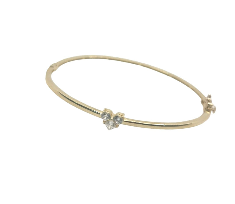 צמיד קשיח אובלי | משולב באמצע תליון לב | משובץ אבני זרקון | זהב צהוב 14 קראט | דגם אופק