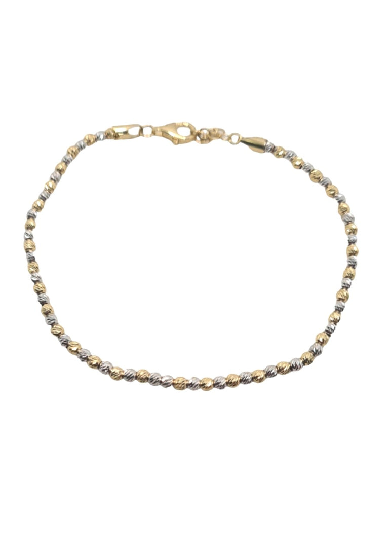 צמיד כדורים | שתי צבעים של זהב | צהוב לבן 14 קראט | דגם שובל