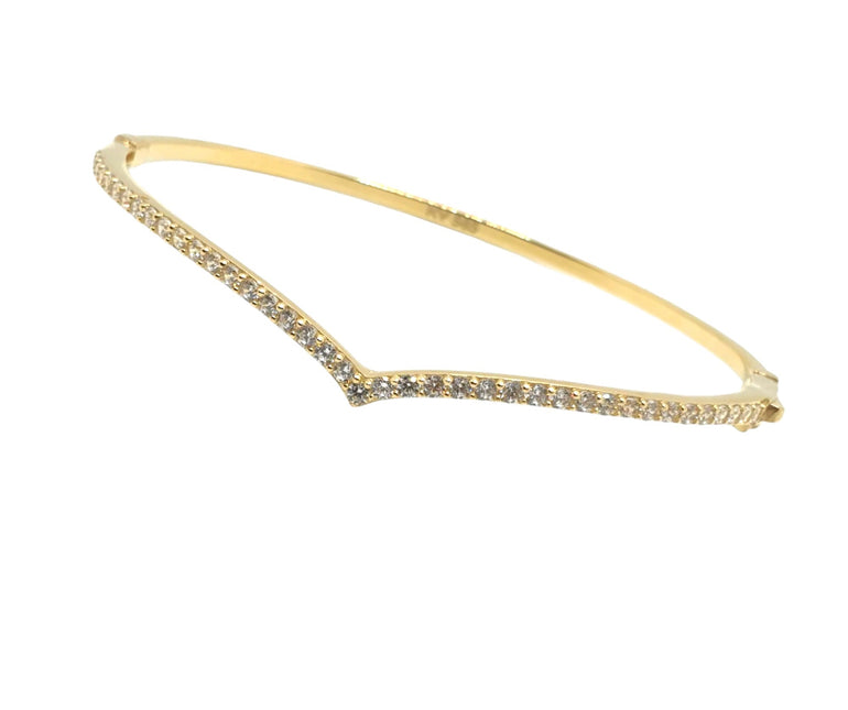 צמיד קשיח אובלי | צורת וי משובץ אבני זרקון | זהב צהוב 14 קראט | דגם תאיר