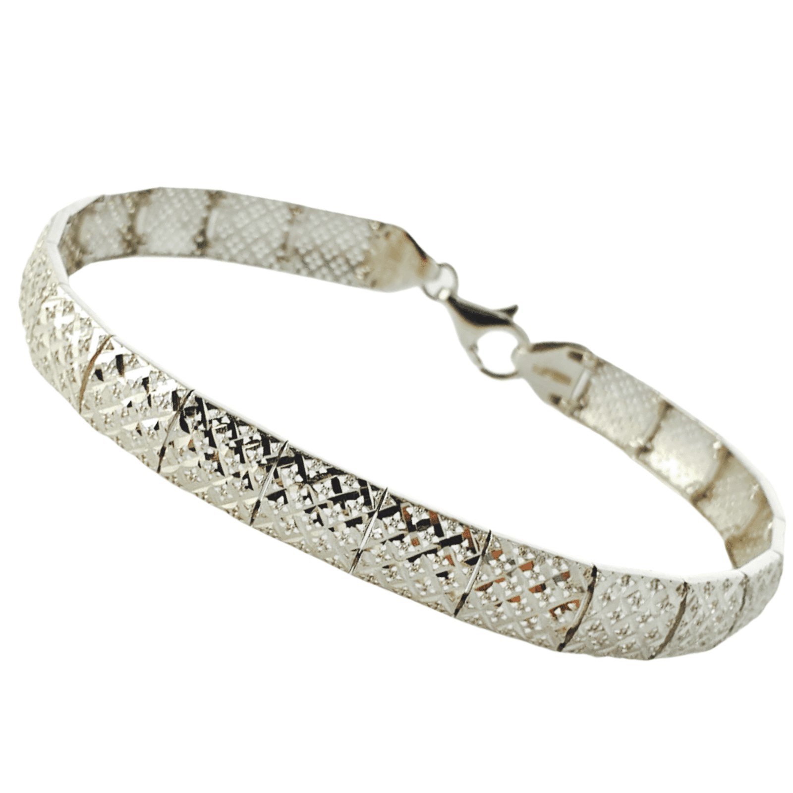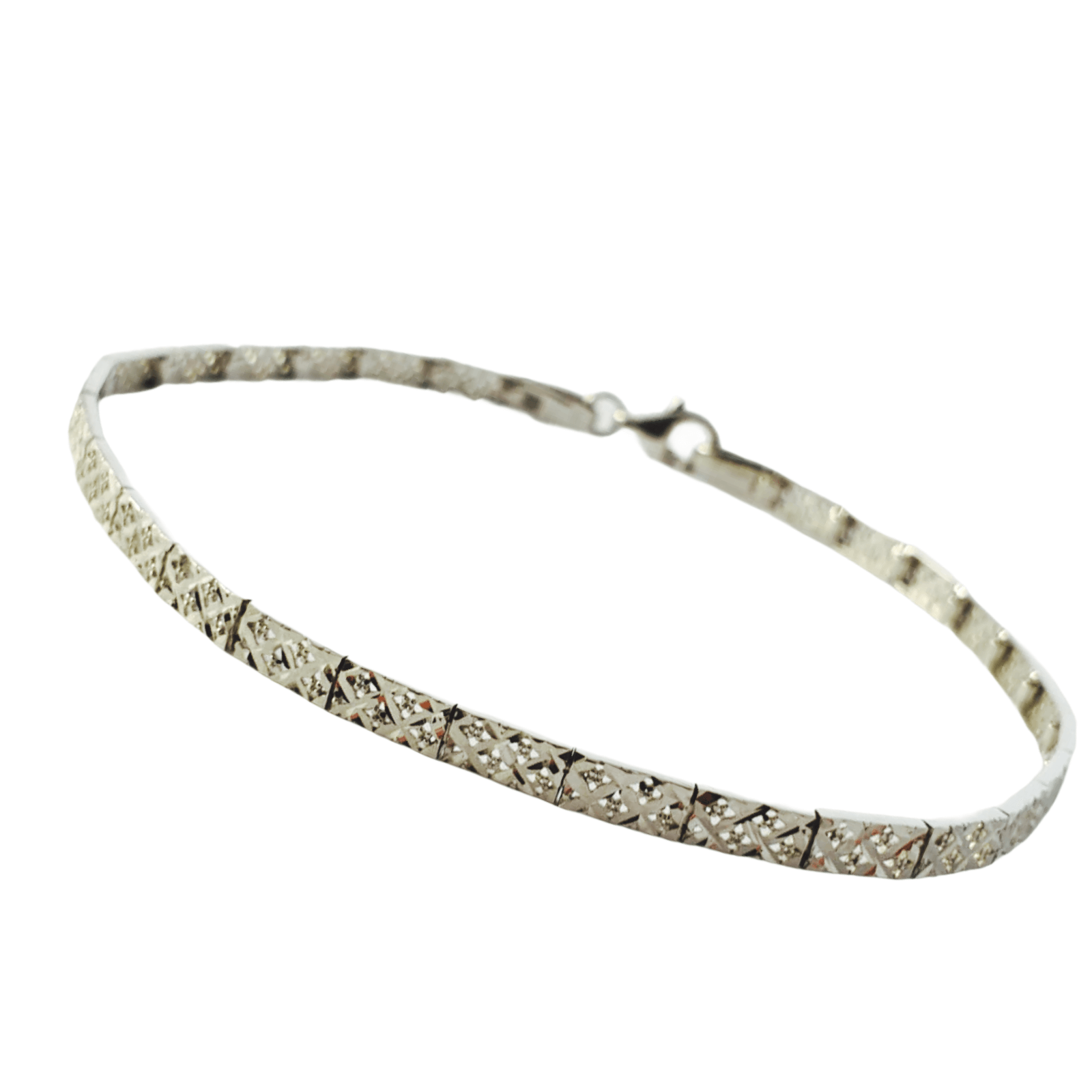 צמיד צר חוליות | חרוט בחיתוכי לייזר | זהב לבן 14 קראט | דגם אוריה