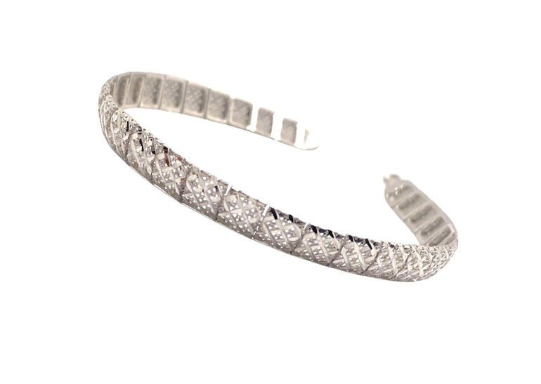 צמיד חוליות רחבות | חיתוכי לייזר נוצץ | זהב לבן 14 קראט | דגם אנאל
