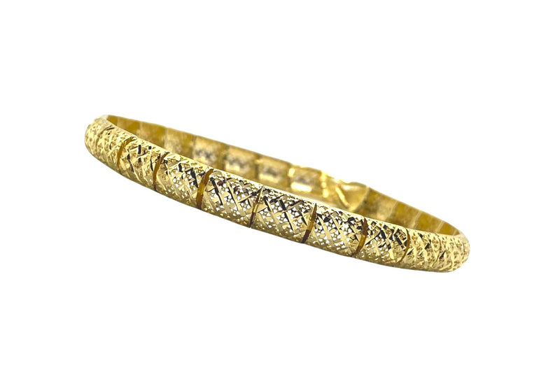 צמיד חוליות | רחב חיתוכי לייזר | נוצץ מבריק | זהב צהוב 14 קראט | דגם מורן