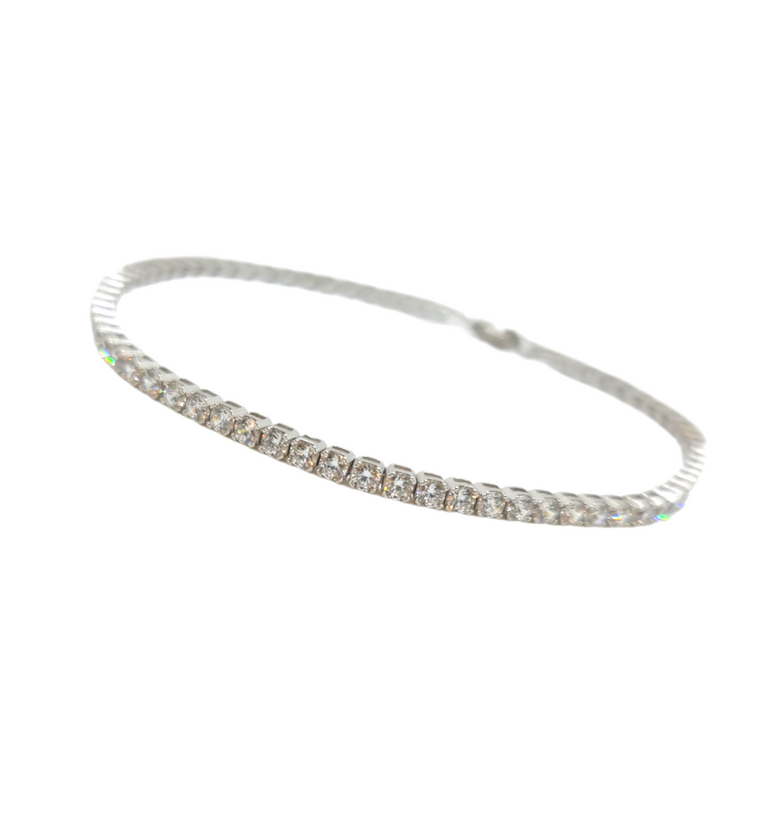 צמיד טניס קשיח בנגל קלאסי עדין משובץ זרקונים, טניס זרקונים אשר מדגיש את העדינות של הצמיד. הצמיד משובץ בזרקונים שנראה כמו שיבוץ עדין של יהלומים בנוסף יש לצמיד שיבוץ שיניים שתופסות את האבן בחוזקה ונותנות ביטחון לאבן, בנוסף נותן גם מראה עדין על ידך