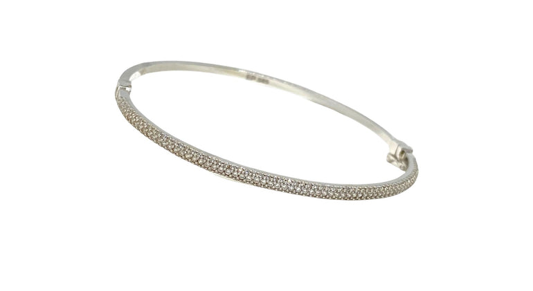 צמיד קשיח משובץ | משובץ אבני זרקון | זהב לבן 14 קראט | דגם שרוני