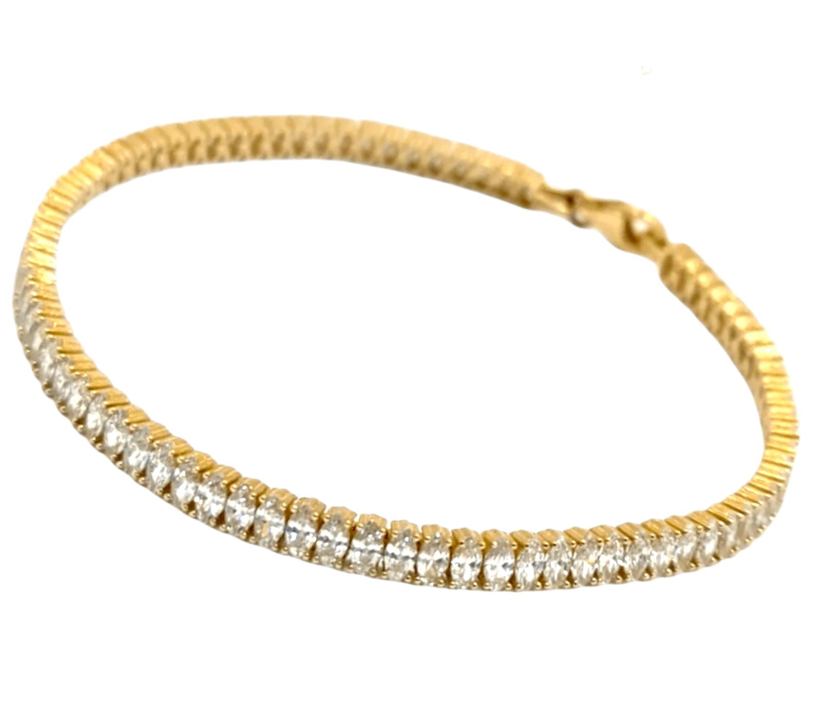 צמיד טניס אבנים אובליות | משובץ אבני זרקון | זהב צהוב 14 קראט | דגם שרי