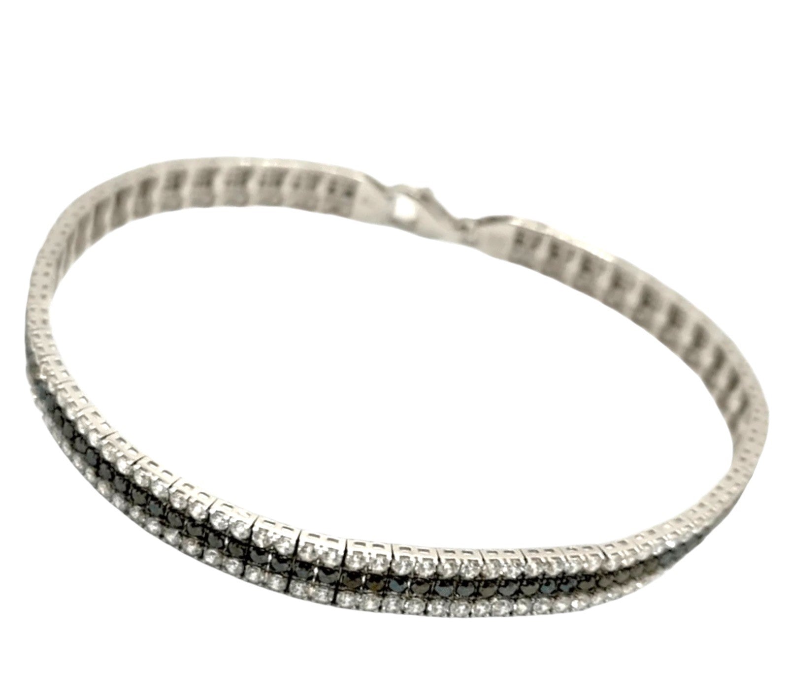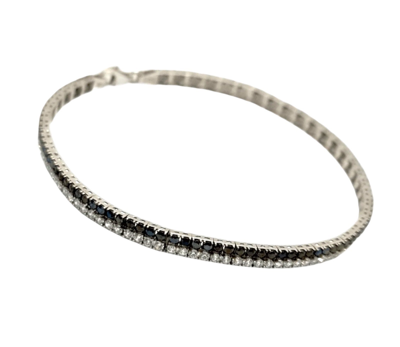 צמיד טניס שתי שורות | משובץ אבני זרקון לבנים ושחורים | זהב לבן 14 קראט | דגם ג'ין