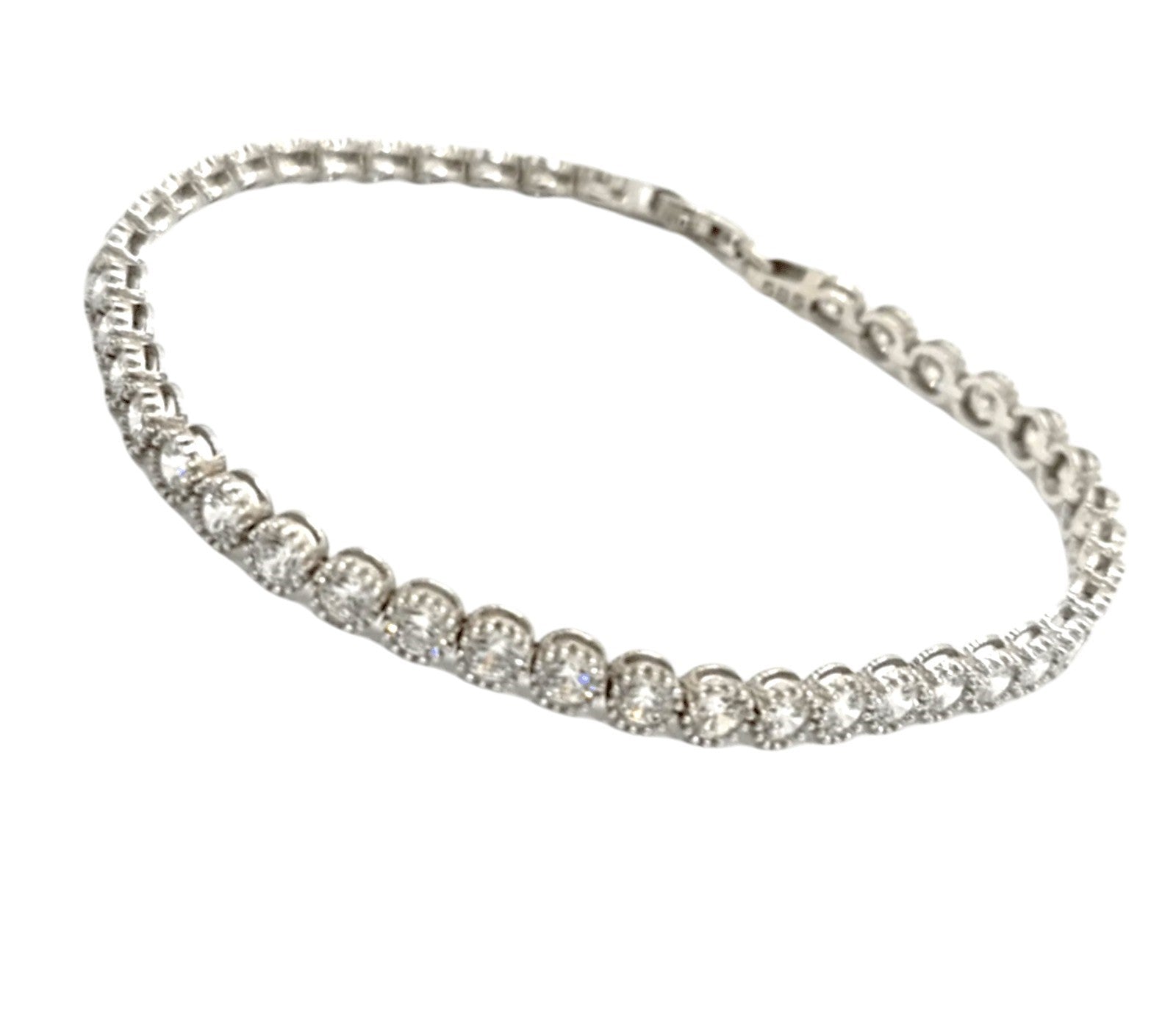 צמיד טניס עדין | שורה עדינה משובץ אבני זרקון | זהב לבן 14 קראט | דגם ג'ולי