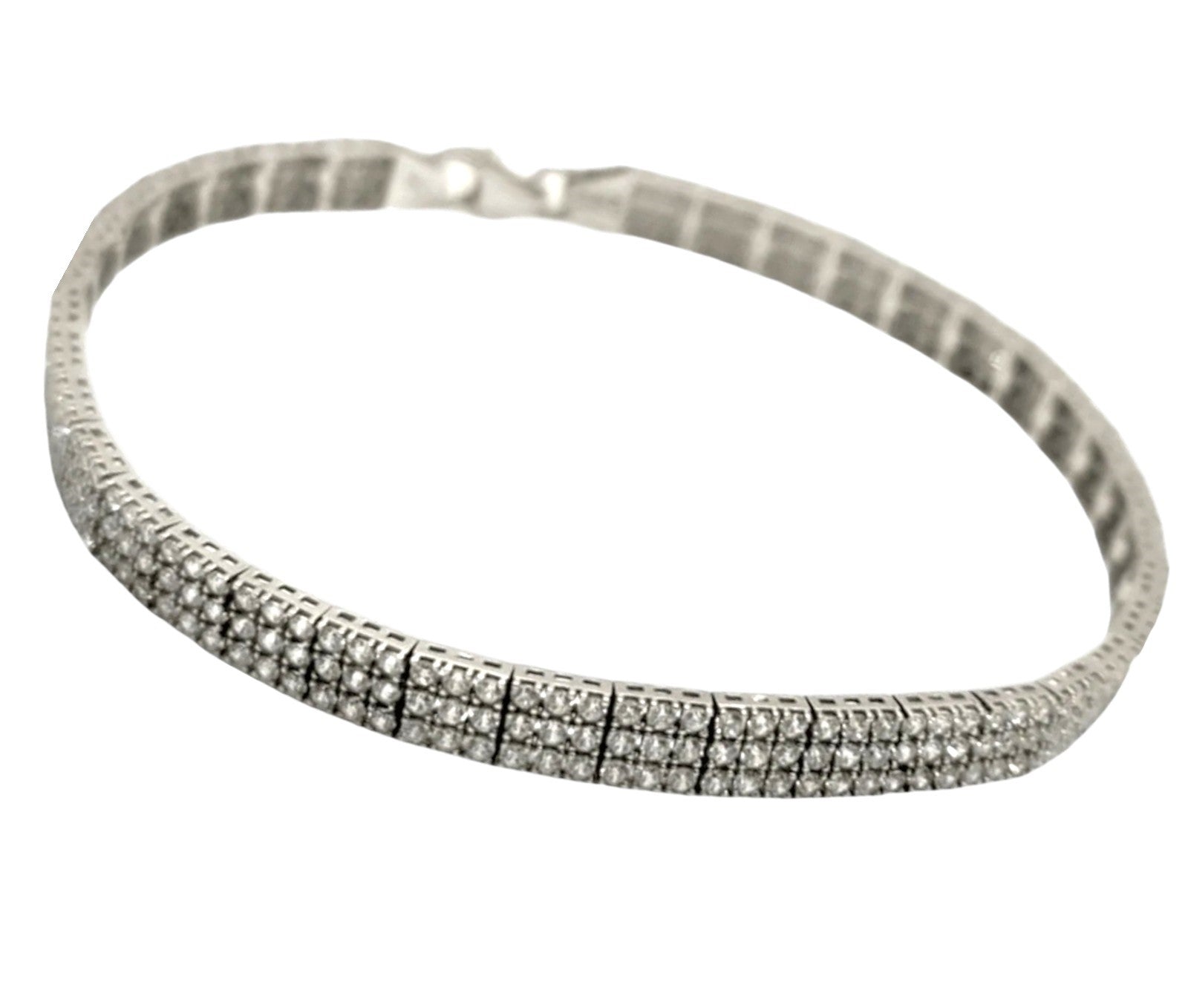 צמיד טניס שלוש שורות | משובץ אבני זרקון לבנים ושורים | זהב לבן 14 קראט | דגם מרין