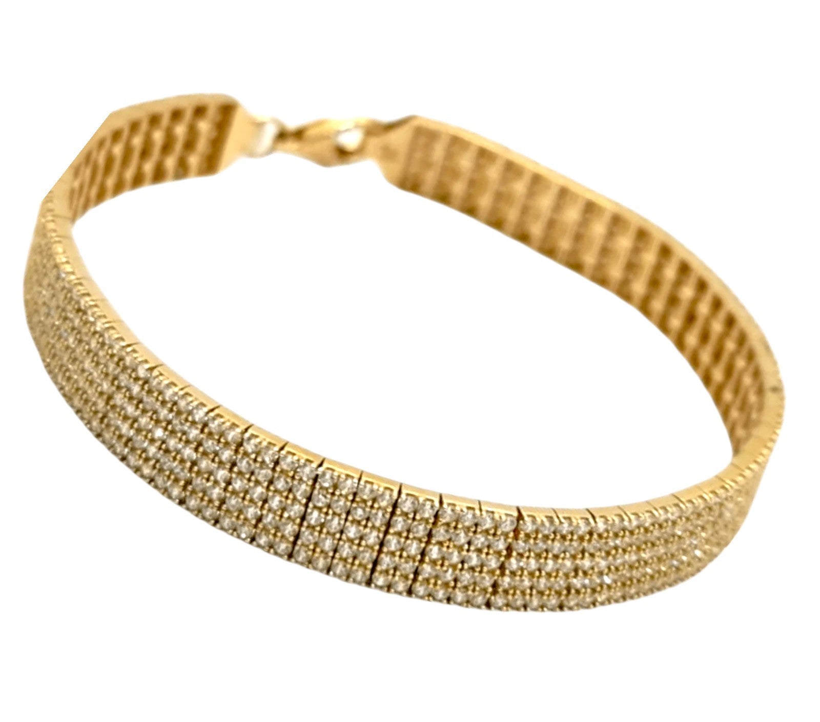 צמיד טניס רחב | חמש שורות | משובץ אבני זרקון | זהב צהוב 14 קראט | דגם קלודין