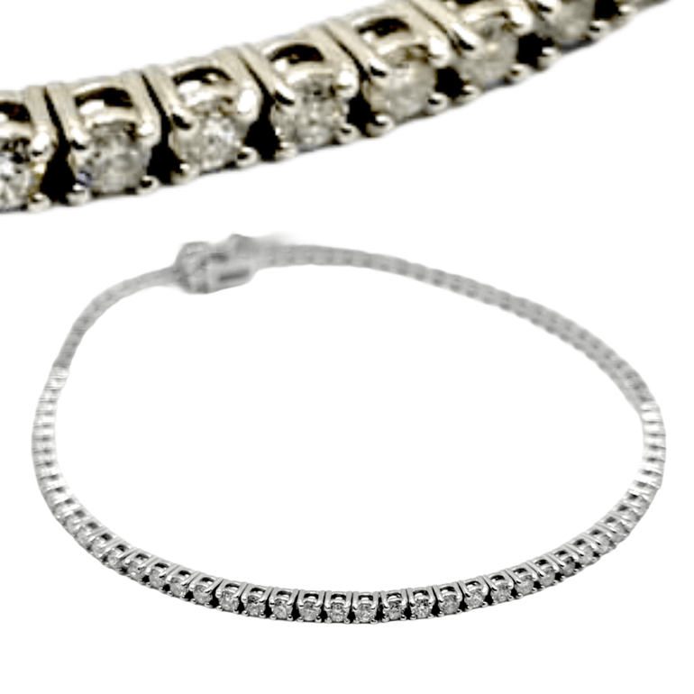 צמיד טניס יהלומים קלאסי עדין, טניס יהלומים 2.00 קראט אשר מדגיש את העדינות של הצמיד. הצמיד משובץ 2.0 קראט יהלומים עם שיבוץ עדין של שיניים שתופסות את האבן בחוזקה ונותנות ביטחון לאבן, בנוסף נותן גם מראה עדין על ידך