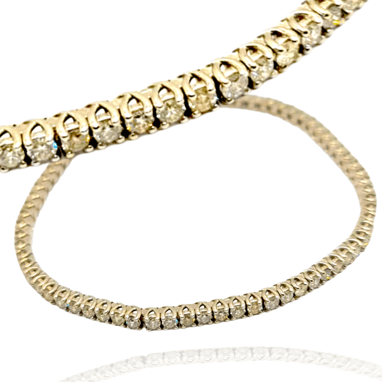צמיד טניס יהלומים קלאסי עדין, טניס יהלומים 3.00 קראט אשר מדגיש את העדינות של הצמיד. הצמיד משובץ 3.00 קראט יהלומים עם שיבוץ עדין של שיניים שתופסות את האבן בחוזקה ונותנות ביטחון לאבן, בנוסף נותן גם מראה עדין על ידך