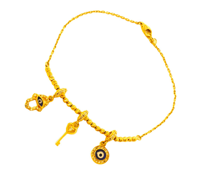 צמיד שרשרת עדין | משולב כדורים ותליונים | זהב צהוב 14 קראט | דגם שני