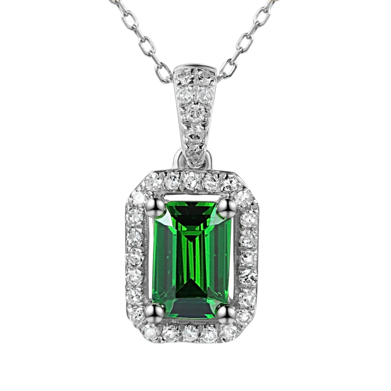 שרשרת ותליון יהלומים בצורת מלבן עם אבן מרכזית אמרלד ומסביב יהלומים קטנים . לפנק את האישה בשביל כל אירוע מיוחד אשר יראה לה את אהבתך הנצחית. שרשרת יהלומים זהב צהוב\לבן לבחירתך, 14 קראט משובצת אמרלד בגודל 0.94 ועוד 31 יהלומים שסה"כ 0.10 קראט